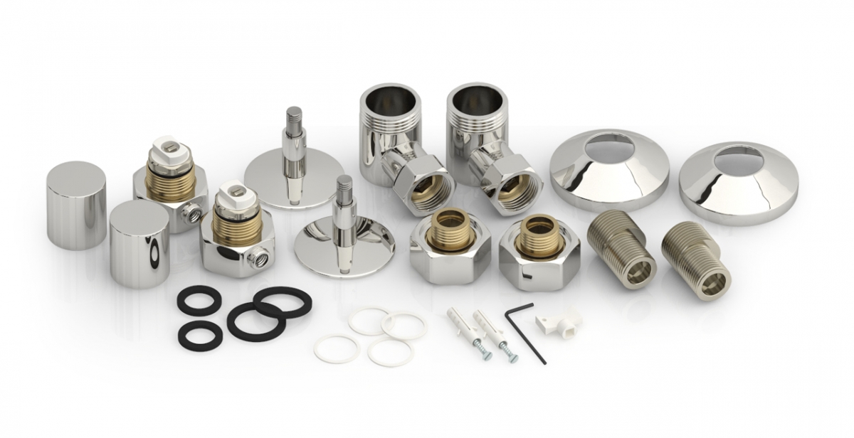 Полный комплект для водяного подключения полотенцесушителя через угловые элементы с узлами для сброса воздуха