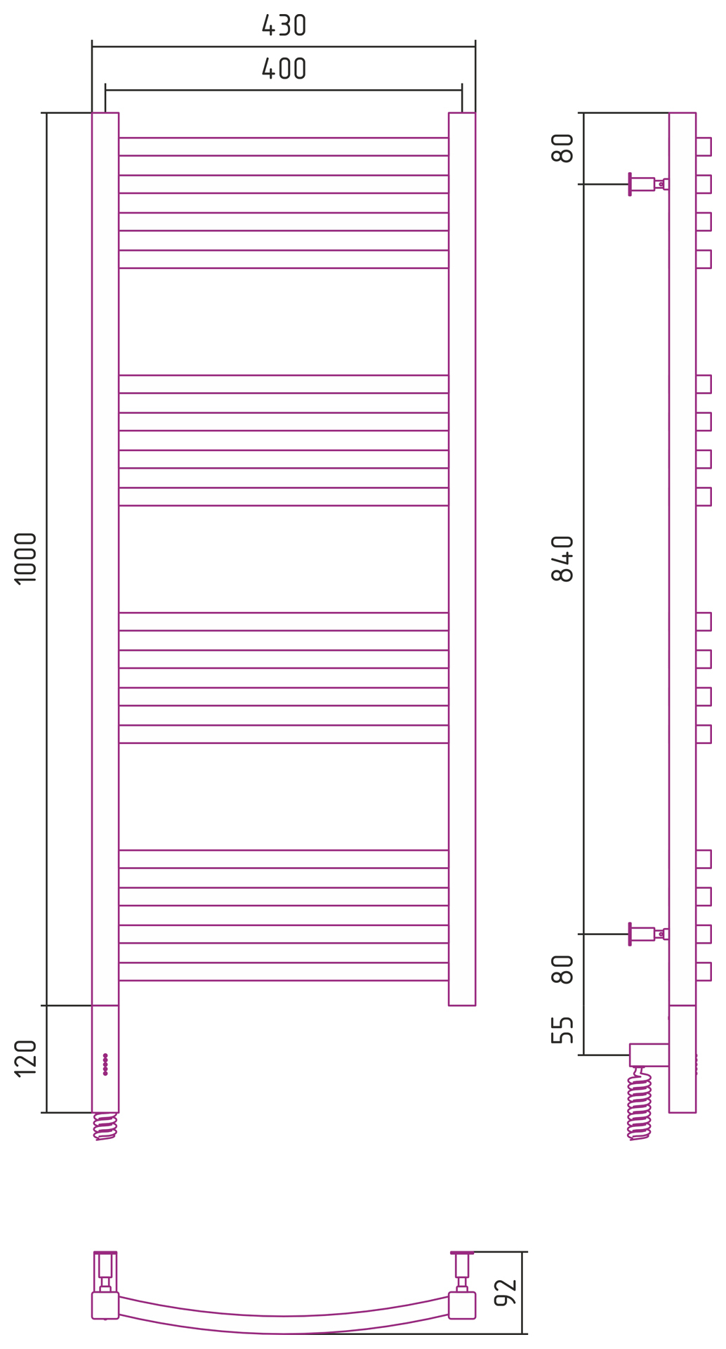 Полотенцесушитель электрический Сунержа Аркус 3.0 1000x400