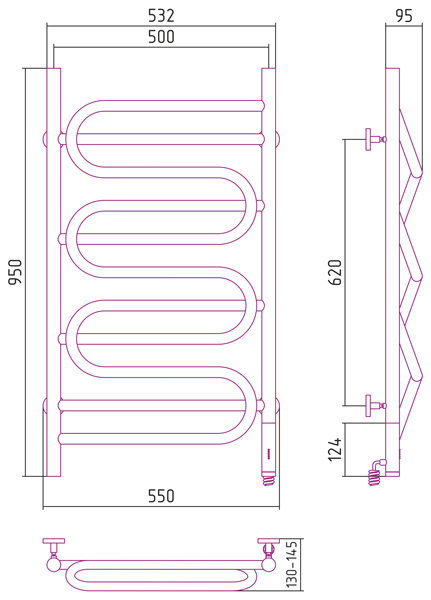Полотенцесушитель электрический Сунержа Иллюзия 950x500