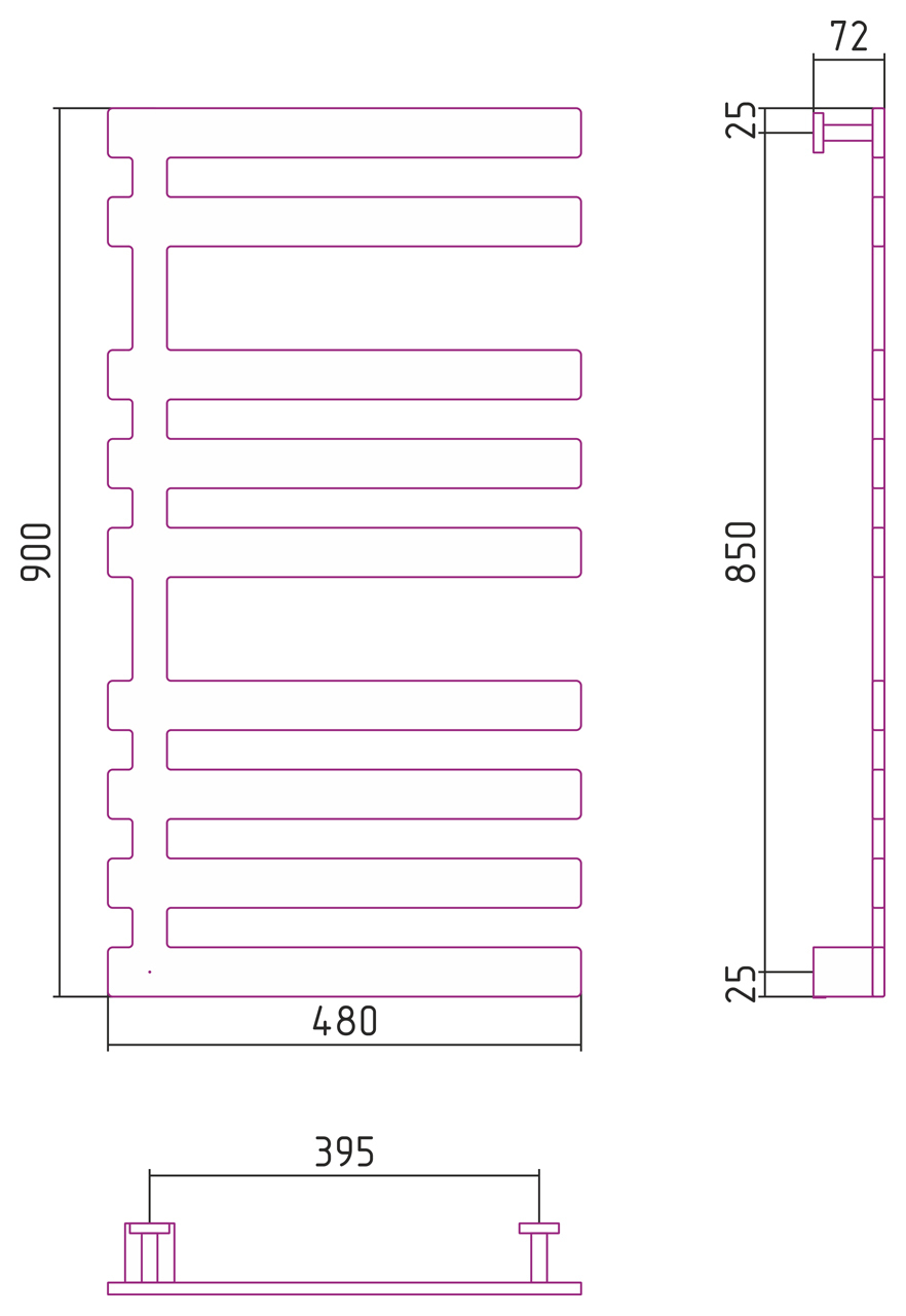Внешние габариты (высота х ширина х глубина)(мм) : 900х480х72